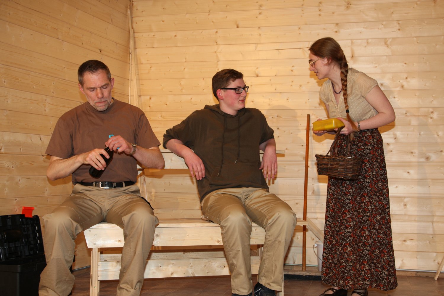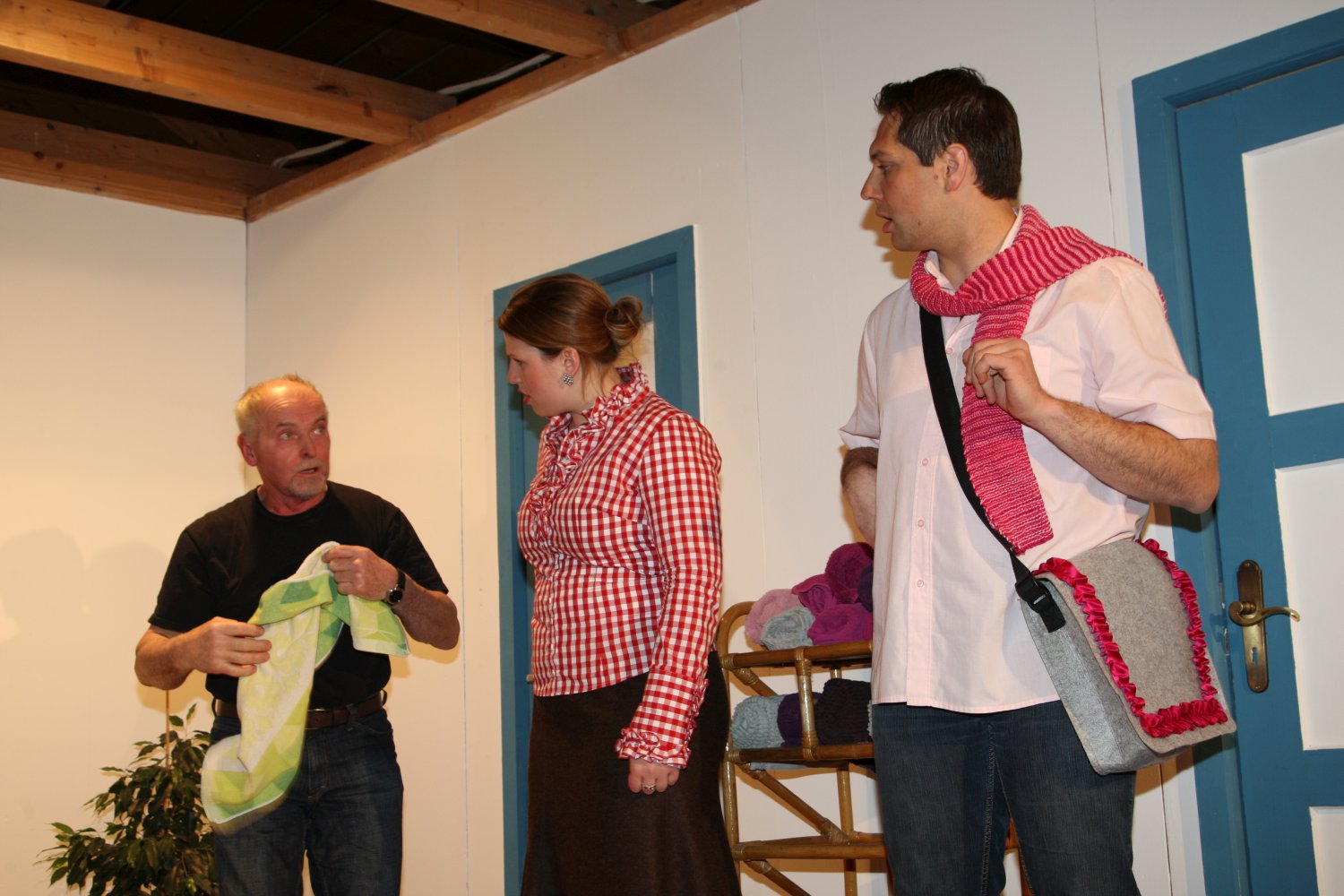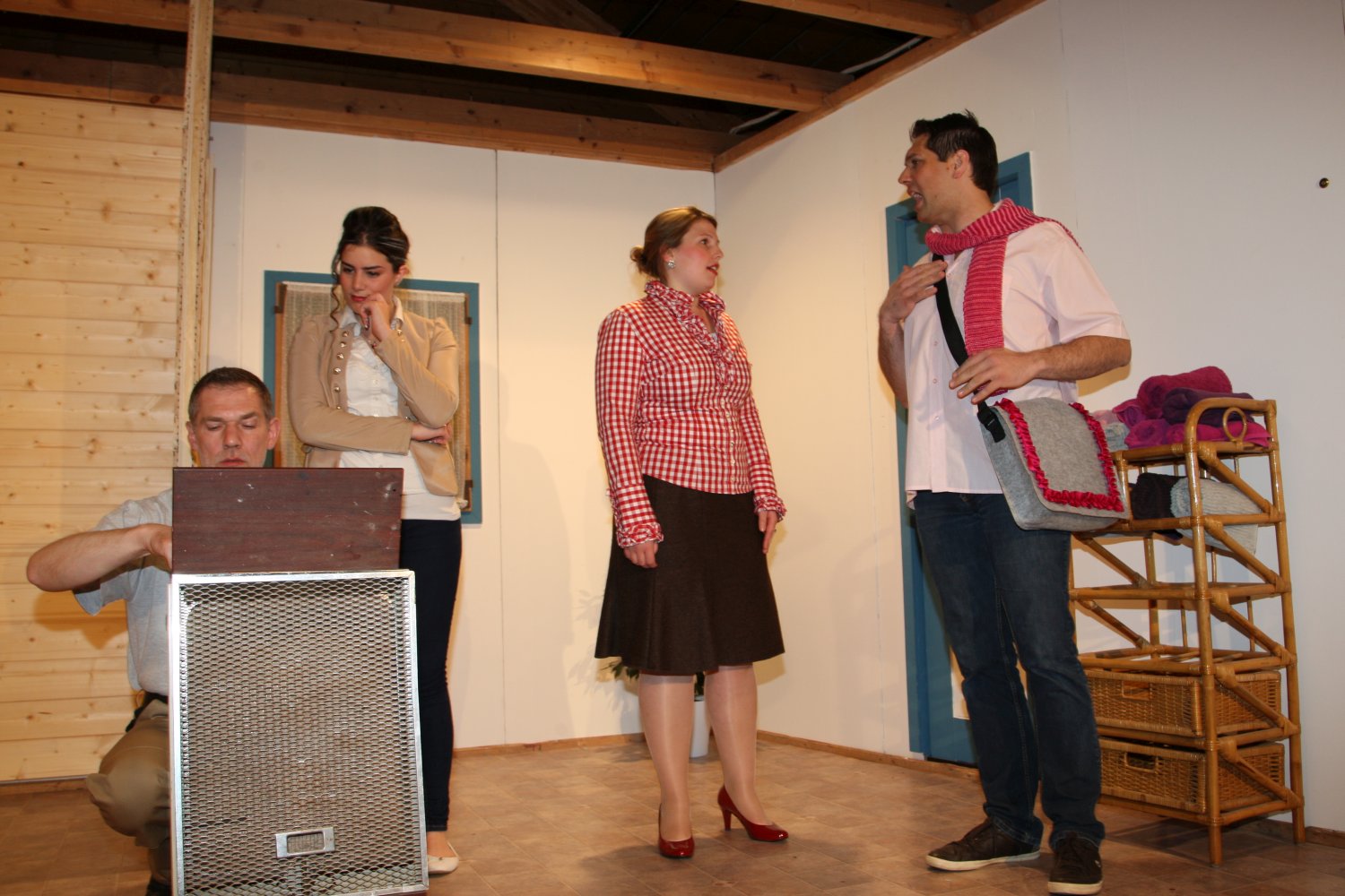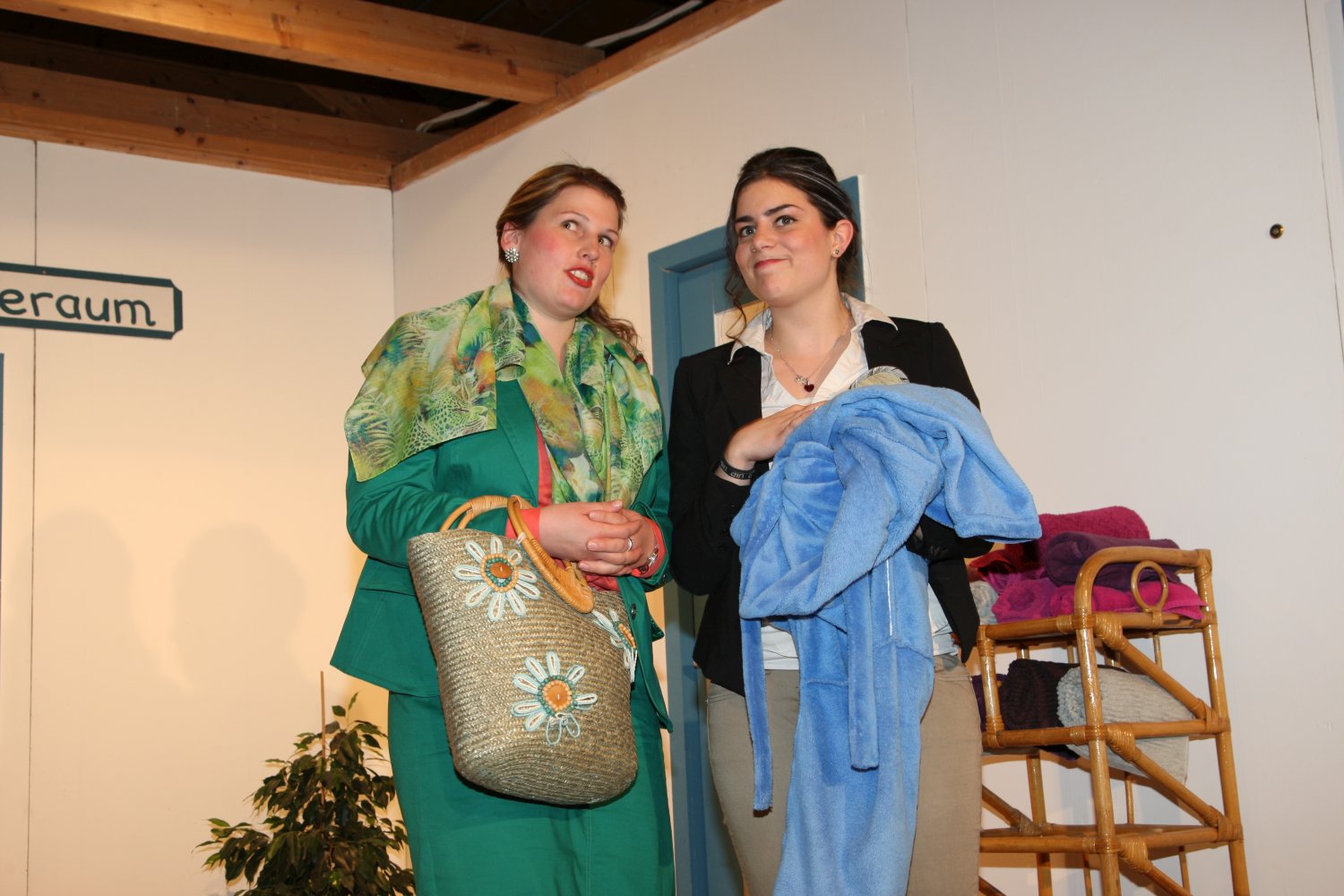 Der Gemeinderat möchte dem etwas verschlafenen Dorf zu mehr Attraktivität verhelfen und deshalb das leer stehende Schlachthaus zur Sauna umfunktionieren. Metzgermeister Fleischhauer hingegen beabsichtigt hier einen neuen Laden zu eröffnen. Obwohl noch keine der beiden Parteien im Besitz einer Genehmigung ist, beginnen sie bereits abwechselnd mit dem Einrichten. Die russischstämmige Olga wird dabei mal als Saunafachkraft, mal als Metzgereiverkäuferin angeheuert, was diese nicht sonderlich aus der Fassung bringt, solang der Vorrat an Wodka reicht. Während einerseits Schreinermeister Bernd und sein nicht gerade von Fleiß geplagter Stift Stefan für die Sauna am Hobeln und Schrauben sind, schafft Fleischhauer nebenher schon mal Schwarzwurst, Blut- und Leberwürste heran und benützt die bereits installierten Saunabänke kurzerhand als Ladentheke. Das kann natürlich nicht gut gehen und führt auf beiden Seiten zu erheblicher Verwirrung, wobei der als Werbefotograf angeheuerte feminine Sebastiano das Fass schier zum Überlaufen bringt. Aber Bürgermeisterin Gerlinde hat einen salomonischen Einfall... |