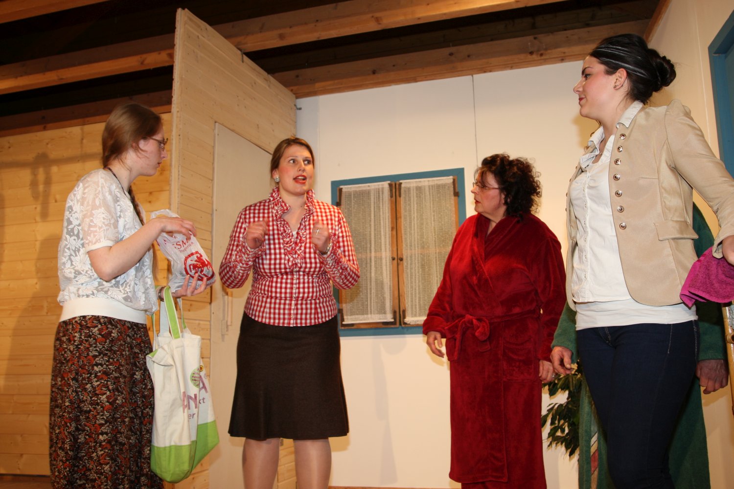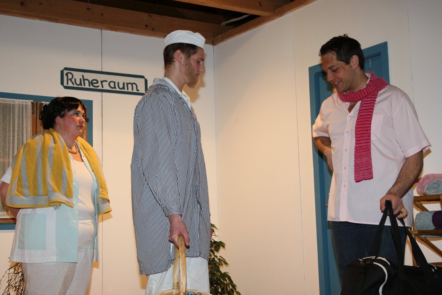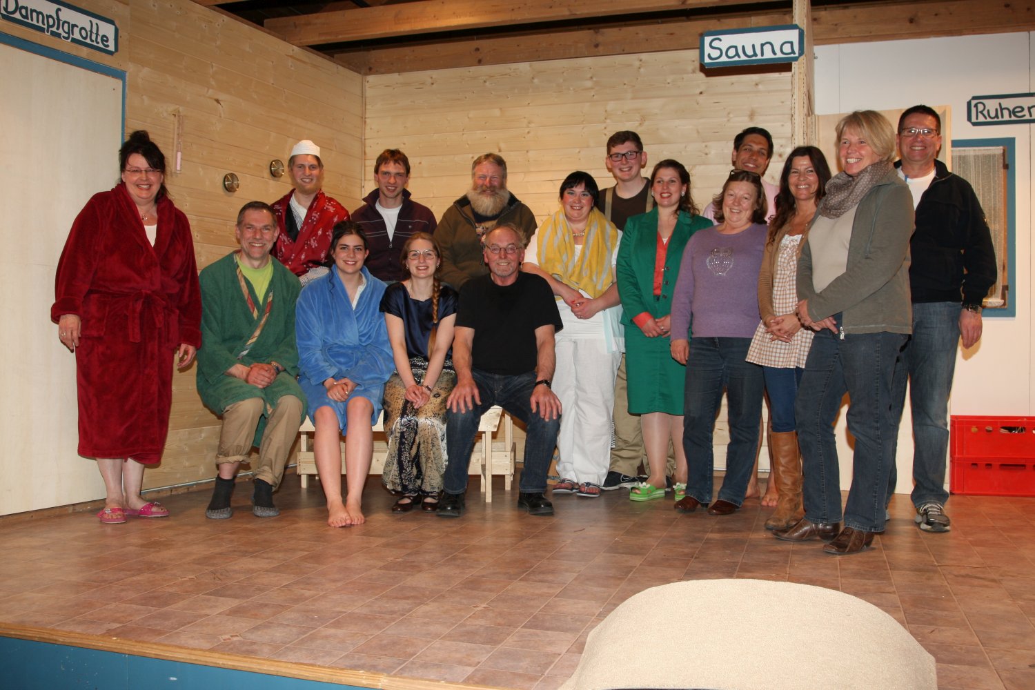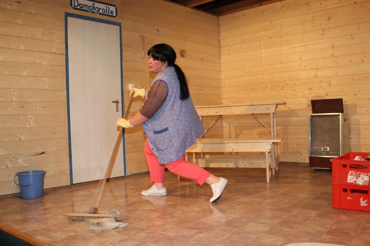Der Gemeinderat möchte dem etwas verschlafenen Dorf zu mehr Attraktivität verhelfen und deshalb das leer stehende Schlachthaus zur Sauna umfunktionieren. Metzgermeister Fleischhauer hingegen beabsichtigt hier einen neuen Laden zu eröffnen. Obwohl noch keine der beiden Parteien im Besitz einer Genehmigung ist, beginnen sie bereits abwechselnd mit dem Einrichten. Die russischstämmige Olga wird dabei mal als Saunafachkraft, mal als Metzgereiverkäuferin angeheuert, was diese nicht sonderlich aus der Fassung bringt, solang der Vorrat an Wodka reicht. Während einerseits Schreinermeister Bernd und sein nicht gerade von Fleiß geplagter Stift Stefan für die Sauna am Hobeln und Schrauben sind, schafft Fleischhauer nebenher schon mal Schwarzwurst, Blut- und Leberwürste heran und benützt die bereits installierten Saunabänke kurzerhand als Ladentheke. Das kann natürlich nicht gut gehen und führt auf beiden Seiten zu erheblicher Verwirrung, wobei der als Werbefotograf angeheuerte feminine Sebastiano das Fass schier zum Überlaufen bringt. Aber Bürgermeisterin Gerlinde hat einen salomonischen Einfall...  |