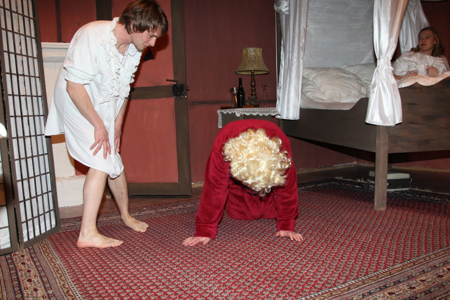 In einem Preisausschreiben gewinnen Arthur und Marie eine ungewöhnliche Hochzeitsnacht im Schloss derer zu Riedersheim, auf dem ein Fluch liegt. Besitzer Graf Theodor kann seine angebetete Baronesse Sarah erst ehelichen, wenn dieser Fluch gebannt ist. Um dies zu erreichen muss ein noch unberührtes Brautpaar seine Hochzeitsnacht im Bett des Freifräuleins Gwendolyn verbringen, während alle anderen Bediensteten loyal zum Grafen stehen. | |||||||||||||||||||||||||||||||