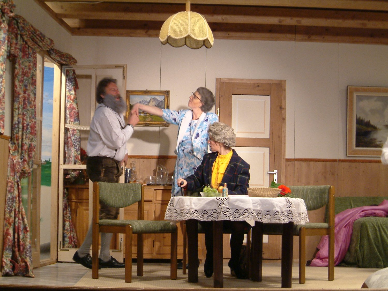 Um ihr Lokal einmal gründlich renovieren und modernisieren zu lassen, beschließt Klaus mit seiner Frau Sonja, seine Mutter und deren zwei Schwestern in Kur zu schicken. Die drei „Alten“ mischen nämlich noch zu gerne im Restaurant mit und Veränderungen werden gar nicht gerne gesehen. Wie zu erwarten war, gefällt es ihnen in der Kur überhaupt nicht – das Essen ist schlecht und krank fühlen sie sich ja überhaupt nicht. Der arme Doktor hat alle Hände voll zu tun, die drei rüstigen Frauen im Zaum zu halten. Erträglicher wird alles, als sie erkennen, dass so manch Gutes durch ihre Terrassentüre herein spaziert, sei es der nette, junge Pizzalieferant oder der geheimnisvolle Rosenkavalier. Bei soviel „Durchgangsverkehr“ und Abwechslung wollen sie schließlich gar nicht mehr heim ... | |||||||||||||||||||||||||||||||||||||