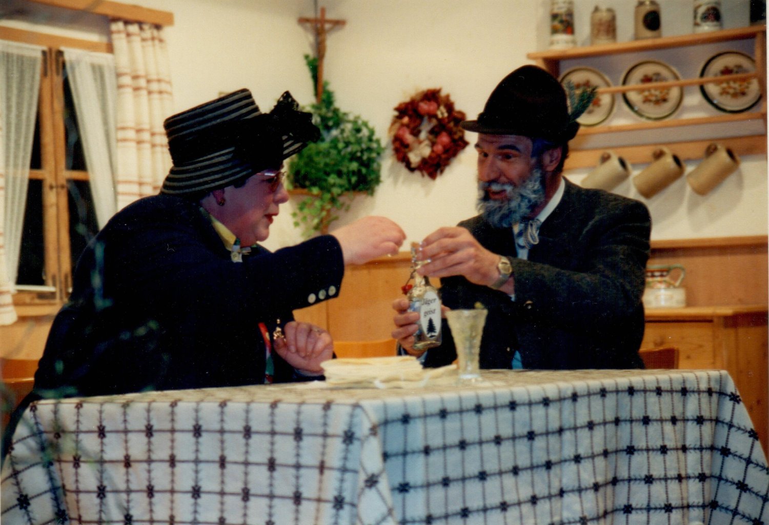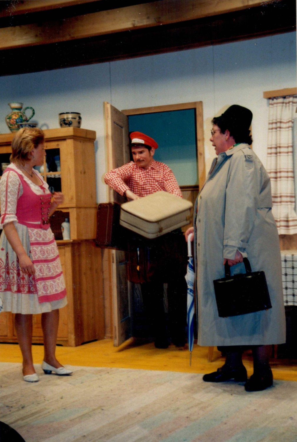 Die Erbtante ihres verstorbenen ersten Mannes ist im Anmarsch und darf natürlich nicht wissen, dass Wally vor kurzem ein zweites Mal geheiratet hat. Also muss der frischgebackene Ehemann aus dem gemeinsamen Schlafzimmer ausziehen und darf von nun an als Hausdiener fungieren. Ein gelungenes Verwechslungsspiel beginnt und die Tante hat überhaupt keine Ahnung mehr, wer nun zu wem gehört. | |||||||||||||||||||||||||||||||