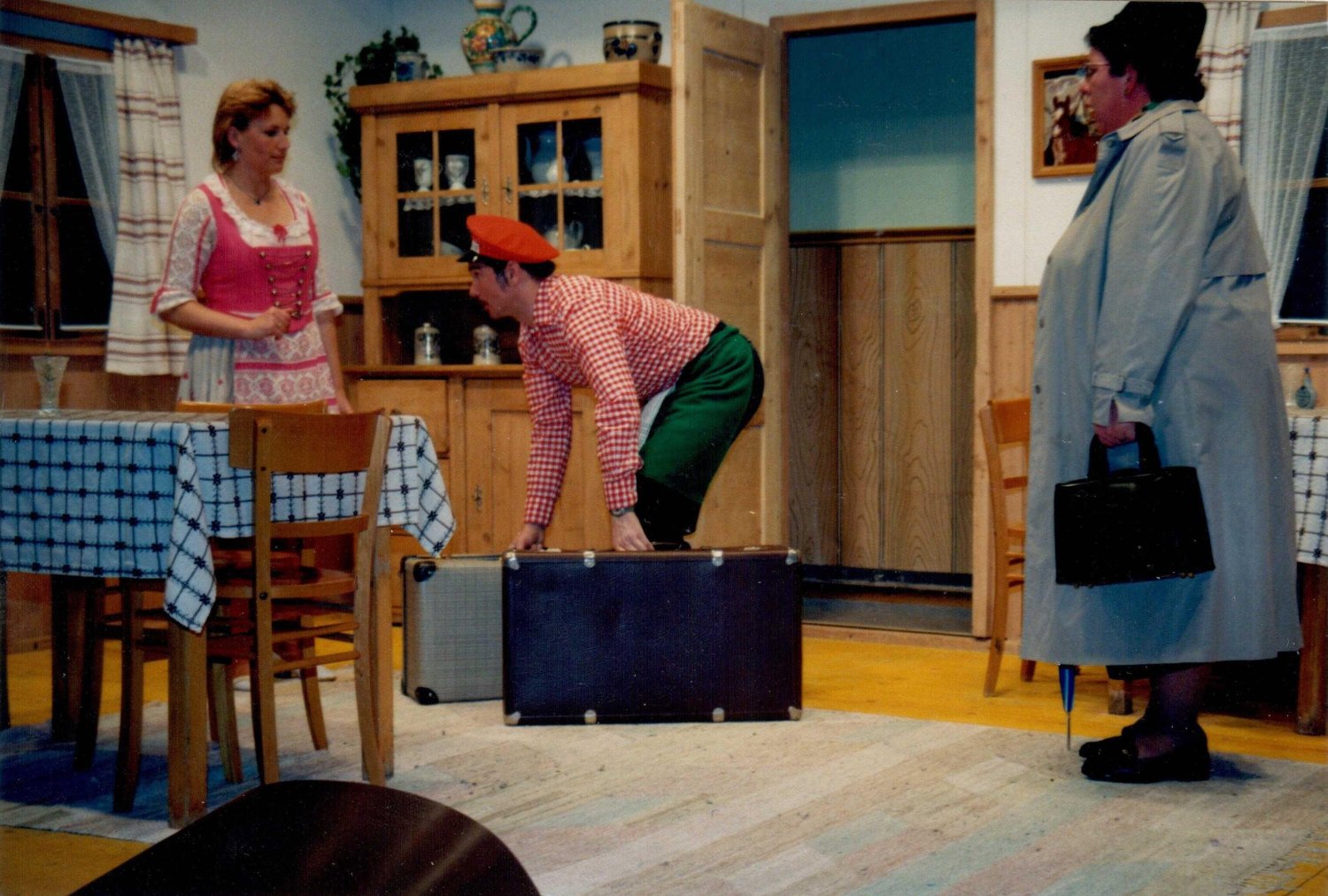 Die Erbtante ihres verstorbenen ersten Mannes ist im Anmarsch und darf natürlich nicht wissen, dass Wally vor kurzem ein zweites Mal geheiratet hat. Also muss der frischgebackene Ehemann aus dem gemeinsamen Schlafzimmer ausziehen und darf von nun an als Hausdiener fungieren. Ein gelungenes Verwechslungsspiel beginnt und die Tante hat überhaupt keine Ahnung mehr, wer nun zu wem gehört. | |||||||||||||||||||||||||||||||